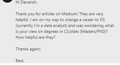 I’ve had a lot of people reach out to me with their situations asking me for advice about transitioning into these fields from different sectors. I also talked to a lot of students who are looking to break into the field. By detailing the steps I took to get to where I am, and what I learned, hopefully, people will be able to learn from my experiences. My path has been unusual. It is not the usual“get a Master’s/certifications to get an entry-level position into ML and work your way up” story that is recommended these days. I’m not against this approach but not everyone has the capability or desire to go this route. My way is an interesting alternative