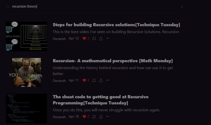 With this increased recognition has come more communication with people. And it seems like some of you are still struggling to code up recursion problems. So I have a very interesting trick for you. This technique can be applied to all recursion programming, and is always effective (at least for coming up with brute force solutions). This my amazing friends is called the recursive leap of faith.