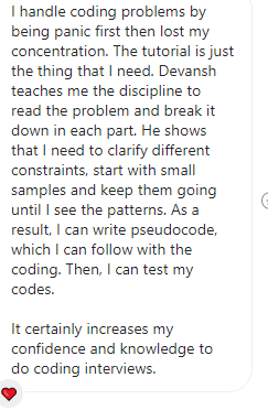Notice how the student specifically mentions the process of exploring constraints and working with small cases being helpful to her. Often small brute force simulations will help you see the pattern required to optimize.